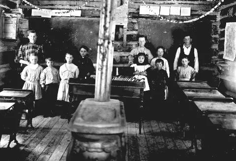 Teacher Julia Dahl, Olive Gurthrie McCorkell age 11, Alice Guthrie Olson age 13,